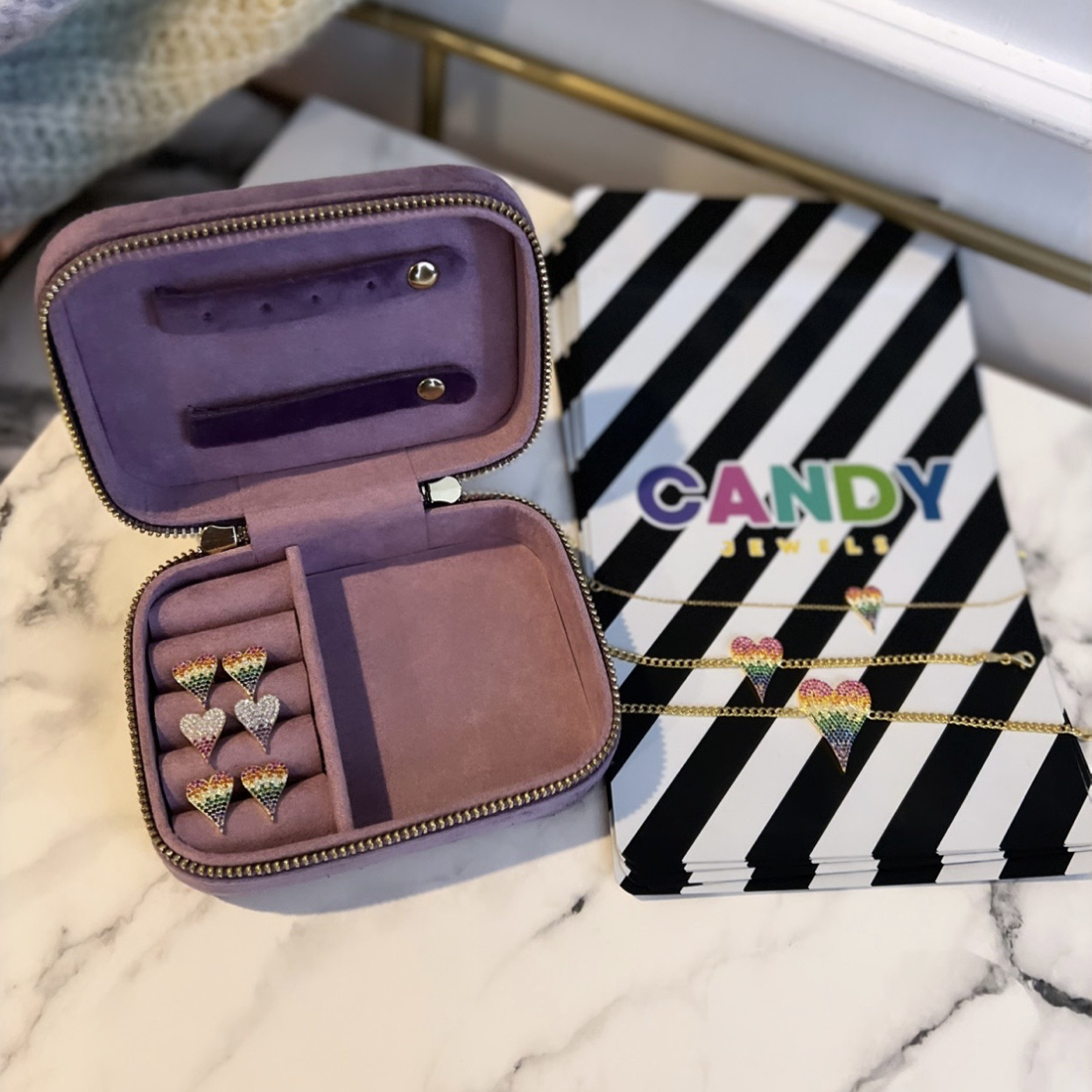- Rainbow 🌈 Ombré Pave Heart Necklace